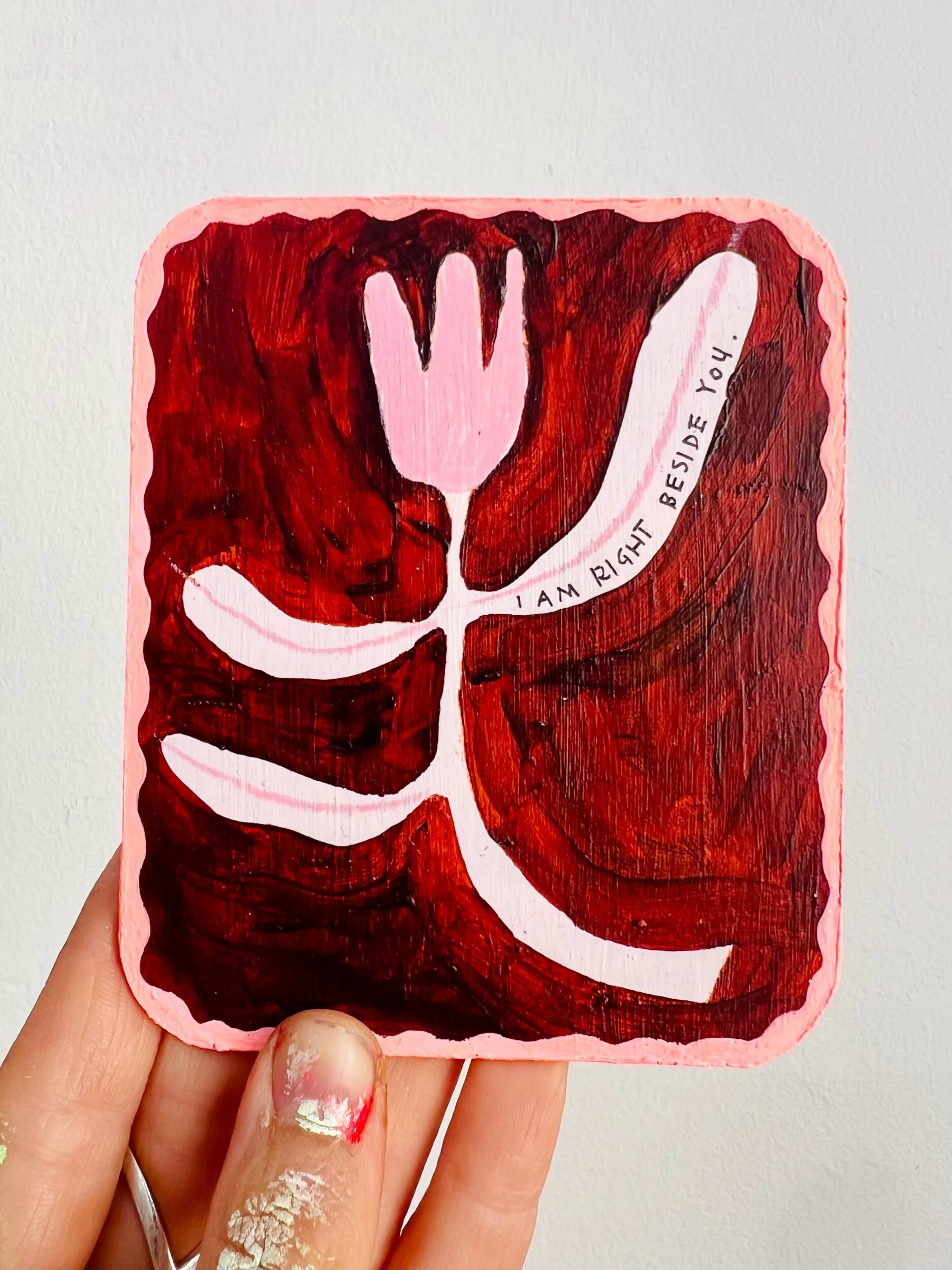 Shop › Sweet nothings #3 Image 1 of 1 Sweet nothings #3 $40.00 sold out I am right beside you.Acrylic and pencil on wood.Lovingly handpainted, one of a kind.W 9.4cm x H 11.2 x D 0.2cm (approx) Sold Out Added! I am right beside you.Acrylic and pencil on wood.Lovingly handpainted, one of a kind.W 9.4cm x H 11.2 x D 0.2cm (approx)