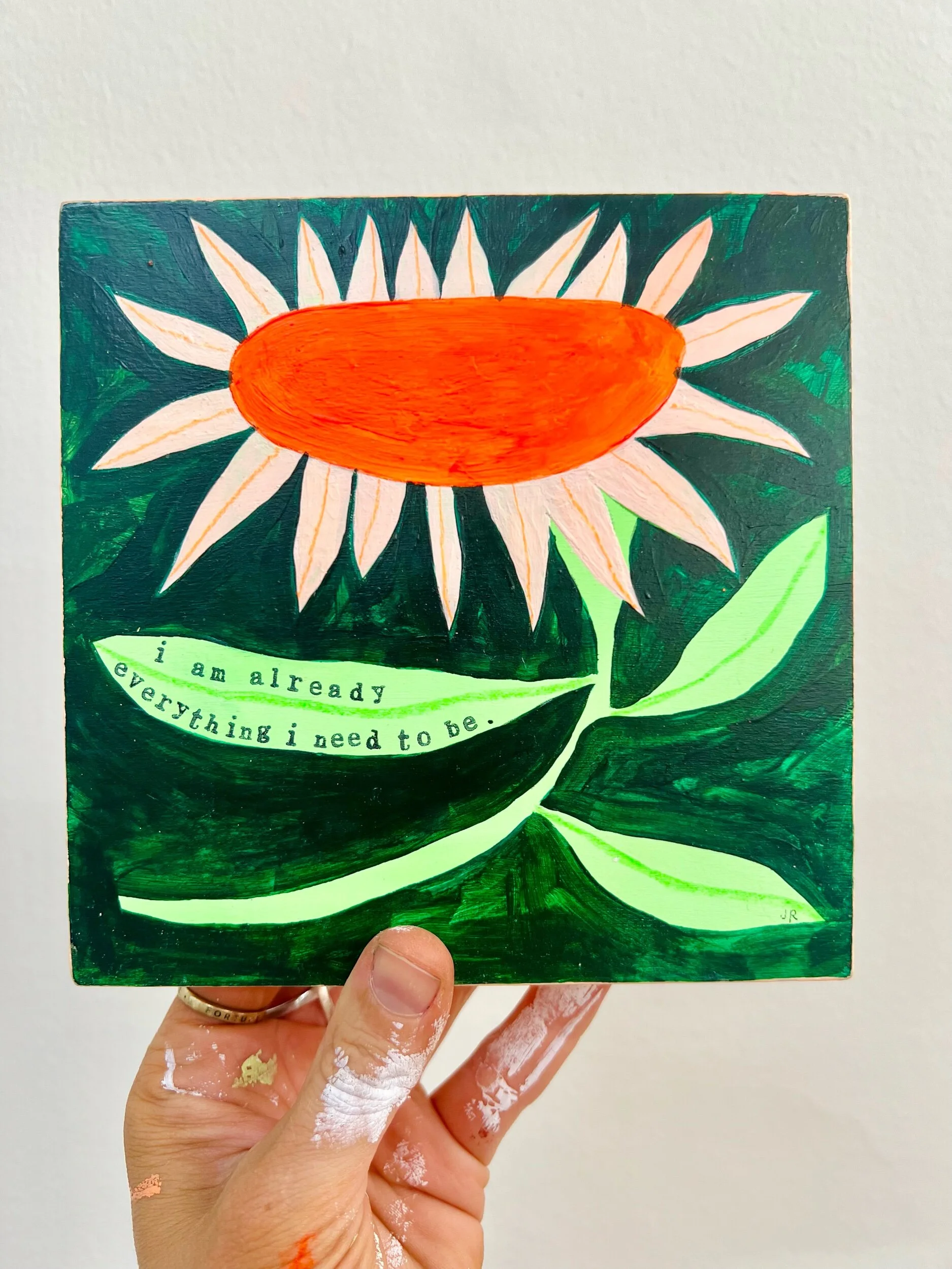 Shop › “I am already everything I need to be” Image 1 of 3 Image 2 of 3 Image 3 of 3 “I am already everything I need to be” $110.00 sold out original painting on wooden boardAcrylic & pencil20 x 20cm Sold Out Added! original painting on wooden boardAcrylic & pencil20 x 20cm